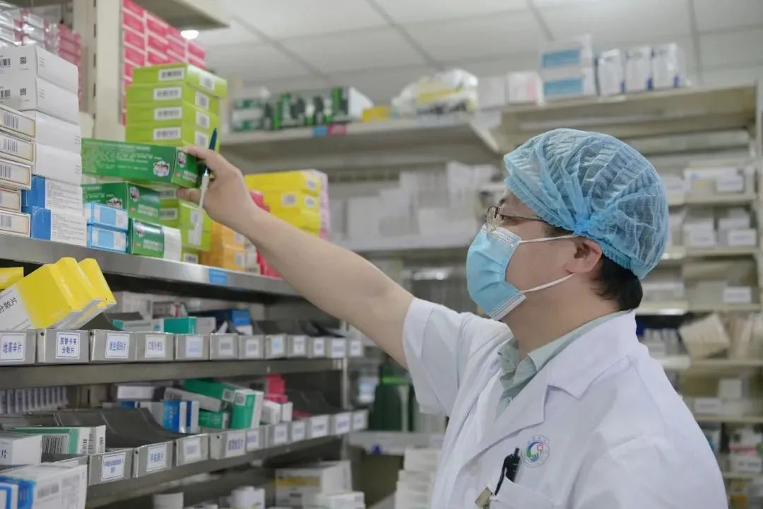 ·药学博士、新津区人民医院药剂科主任唐仕炜正在查看药品摆放
